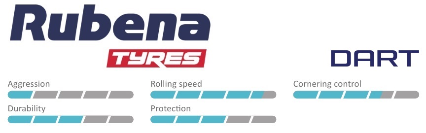 Покришка Rubena Dart 24x1.9" - покришка для підліткових горних велосипедів, призначена для використання на нескладних рельєфах і твердому грунті. Форма і розташування протектора забезпечують ідеальний розподіл ваги, відмінне Бокові виступи забезпечують безпечне управління та хороший контроль над їздою.