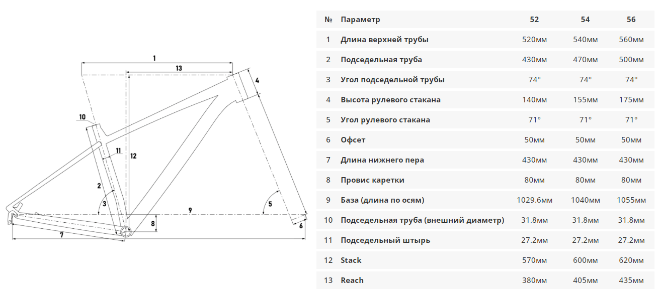 Велосипед выпускается в трех размерах (52, 54, 56 см), которые придутся впору велосипедистам с ростом от 170 до 195 см. А также модель доступна в двух цветовых решениях: сером и черном.