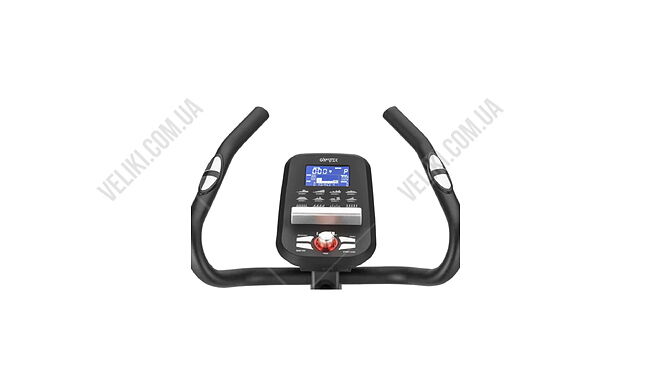 Велотренажер оснащен компьютером с большим и легко считываемым дисплеем с голубой подсветкой. Он предлагает много функций, в том числе отображает основные параметры: время тренировки, скорость, пройденную дистанцию, затраченные калории и пульс. Пульс измеряется с помощью тактильных датчиков, размещенных на рукоятках. Функция SCAN позволяет циклически отображать параметры, ODO – это все расстояние, пройденное на велотренажере, а RPM – индикатор количества оборотов в минуту. Компьютер также имеет соединение Bluetooth, позволяющее использовать обучающие программы, такие как iConsole. 18 тренировочных программ эффективно разнообразят ваши тренировки. Среди них вы найдете программы для начинающих и опытных пользователей. Recovery Test позволяет проверить физическую форму и уровень подготовки занимающегося человека, а Body Fat измеряет уровень жировой массы пользователя.