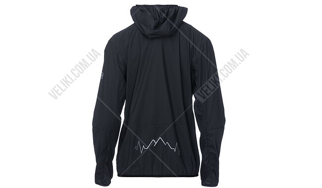 Эргономичный капюшон хорошо облегает и позволяет естественно двигаться. Эластичные манжеты обеспечивают дополнительную защиту от ветра. Для сохранения важных вещей, предусмотрен большой карман с верхним доступом (для документов, телефона, географической карты). Когда куртка не нужна - ее можно сложить в собственный карман, и поместить в рюкзак, где она займет минимум места.
