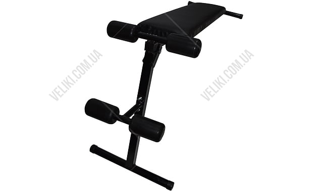 Скамья имеет складную конструкцию, быстро собирается и в собранном виде занимает мало места. Конструкция устойчива, имеет широкие ножки, крепкий профиль, широкую спинку, валики изготовлены из прочного пенополиуретана, что в отличии от паралоновых валиков увеличит срок службы тренажера и делают упражнения более продуктивными. Поверхность скамьи прошита износостойким качественным кожзамом.