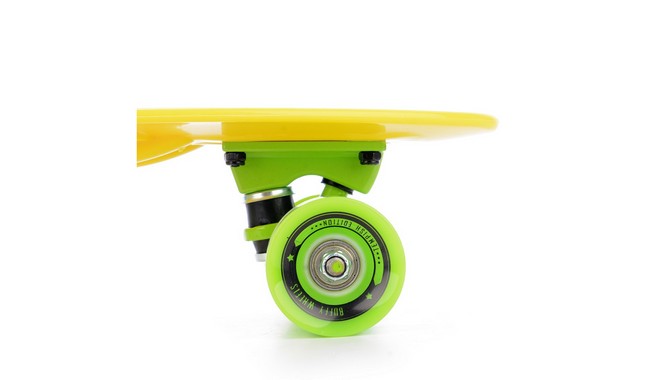 - Материалом для деки служит ударопрочный полипропилен, пластинчатый полимер, который обладает высокой прочностью и устойчивостью к растрескиванию. Сам по себе материал более легкий по сравнению с пластмассой. Такая доска отлично гасит вибрации от неровного асфальта, что способствует лучшему управлению;