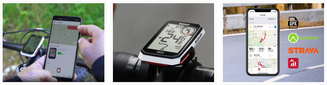 - Збережені маршрути. Також для навігації можна використовувати маршрути, створені в програмах Sigma Data Center, Strava, Komoot або завантажити трек у вигляді файлу GPX;
