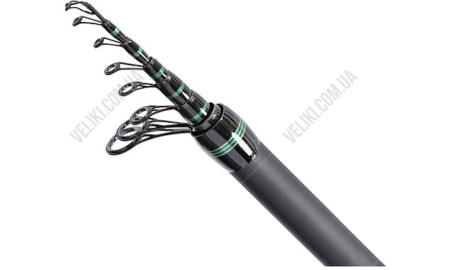 Пропускні кільця полегшені на високих ніжках. Для оптимального розподілу навантаження - на верхніх колінах встановлені додаткові кільця, що ковзають - два на вершинці і одне - на передостанньому коліні. Вудлище поставляється із пластиковим захистом кілець.