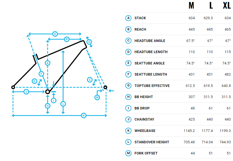 - Увеличенная колесная база и острый угол рулевого стакана добавляют стабильности при езде на высокой скорости и на спусках, а короткий вынос и широкий руль делают управление более отзывчивым и предсказуемым.