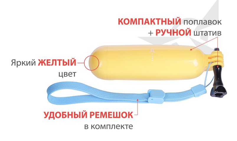 Зафіксуйте прекрасний підводний світ і не переживайте за свою екшн-камеру! Плаваюча рукоятка AIRON утримує екшн-камеру на воді. Тепер цілком впевнено можна робити захоплюючі фото - і відеоматеріали, і не боятися впустити камеру у воду. Завдяки яскравій рукоятці жовтого кольору ви легко побачите екшн-камеру у воді, якщо вона випала з рук.