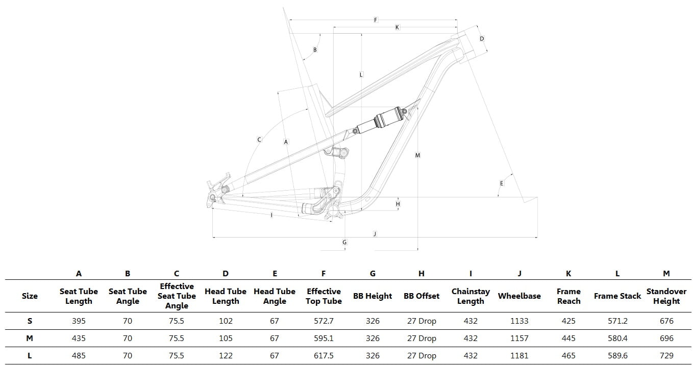 Прочная рама кантрийного двухподвеса сделана из сплава алюминия 6061. Трубы рамы сделаны с применением технологий баттинга и гидроформинга. Благодаря баттингу трубы имеют утончение стенок на тех участках, на которые не приходятся нагрузки. Это помогает сэкономить в массе, не теряя в прочности. Гидроформованный профиль труб позволяет добиться высоких показателей прочности и торсионной жесткости. Рулевой стакан у рамы конусный. Он дает хорошую управляемость байком. Трансмиссионные тросы велосипеда спрятаны внутрь труб, где они защищены от механических повреждений и грязи из-под колес. В заднем треугольнике рамы реализована однорычажная подвеска. Ход ее 120 мм. Его обеспечивает воздушно-масляный амортизатор Sr Suntour Raidon. Его воздушная пружина позволяет настроить жёсткость работы подвески под вес райдера и условия эксплуатации. А масляный демпфер позволяет заблокировать амортизационный ход.