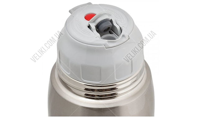 Клапан кришки виконаний з високоякісних матеріалів. Являє собою кнопкову конструкцію, в якій одна кнопка його відкриває, а друга відповідно закриває. Конструкція зроблена так, що при закритті термоса з відкритим клапаном той закривається автоматично.