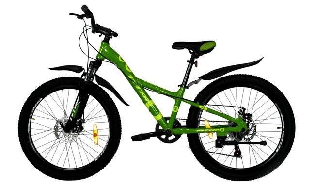Велосипед Titan Calypso 24" - це найкращий вибір для підлітків, які шукають надійний спортивний байк. Алюмінієва рама та сталеве кермо шириною 620 мм забезпечують легкість та комфорт при їзді. Амортизаційна стальна вилка та дискові механічні гальма дозволяють керувати велосипедом безпечно та впевнено.